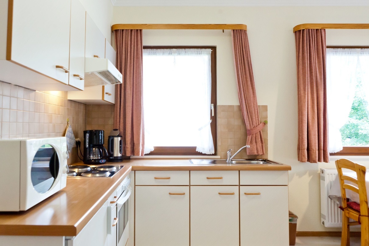 - Die Küchen sind komplett eingerichtet. 4-Plattenherd, Backofen, Mikrowelle, Kaffeemaschine, Wasserkocher, Toaster.