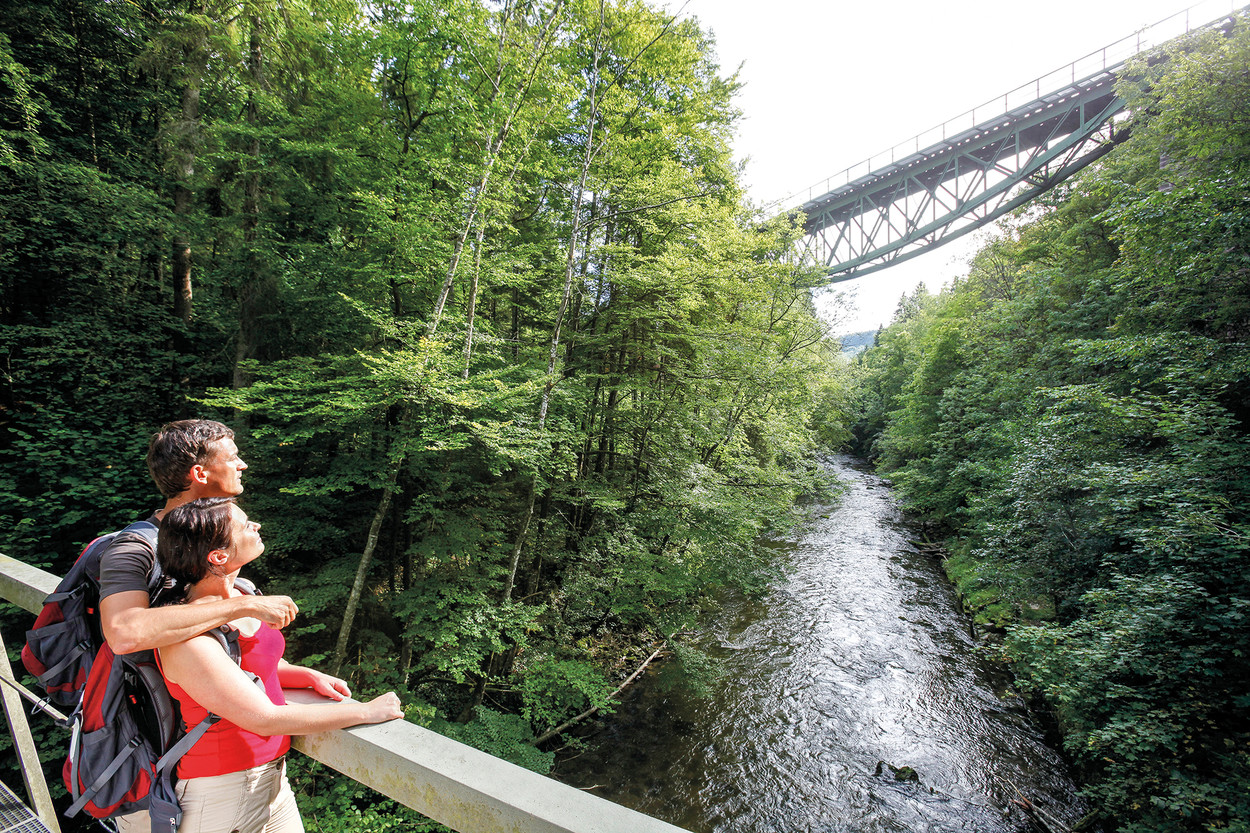 SauschwänzlebahnGleise schlängeln sich durch die Landschaft, Tunnel führen durch Berge, mit stattlichen Brücken werden Täler überwunden und mitten auf der Strecke eine historische Lok. Auf der Sauschwänzlebahn erleben Sie nostalgisches Flair umgeben von wunderschöner Natur.