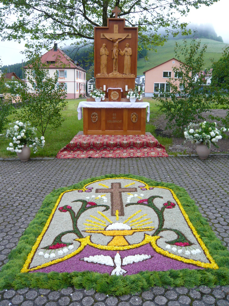 Am Festtag selbst bewegt sich über ihn unter Böllerschüssen, begleitet von Trachtenträgern, den Abordnungen der Vereine und unter den Gesängen von Chor und den Klängen der Trachtenkapelle die heilige Prozession.